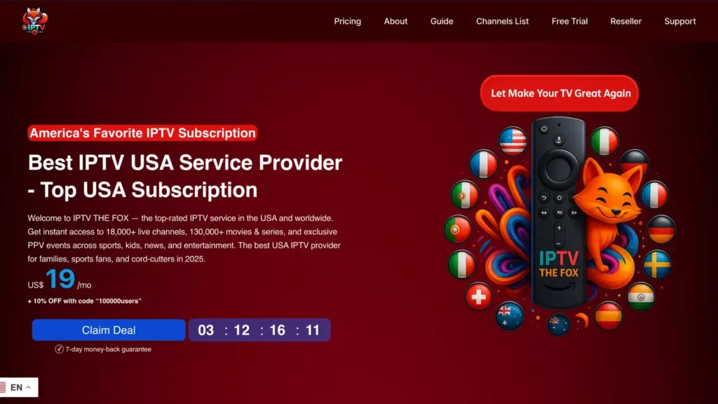 1. IPTV THE FOX – Best Overall IPTV Free Trial (36H + 72H Paid)